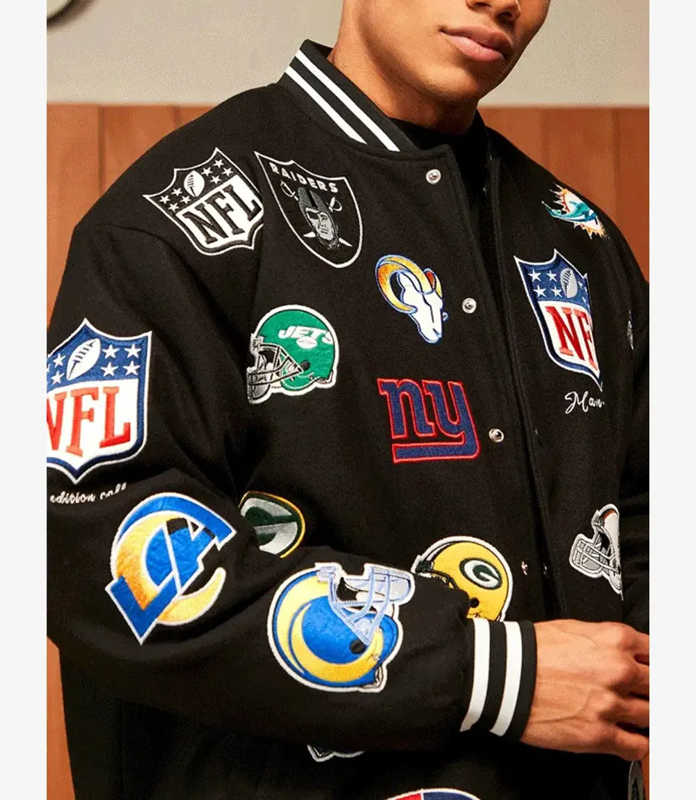All Team Badges Black Varsity Jacket