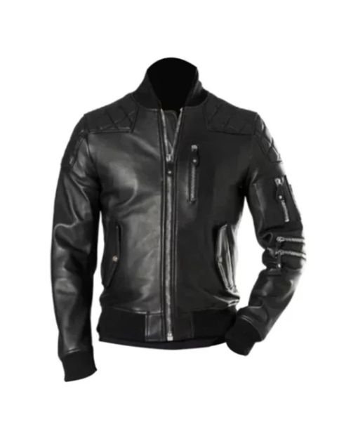 Black Leather Bomber Jacket For Men