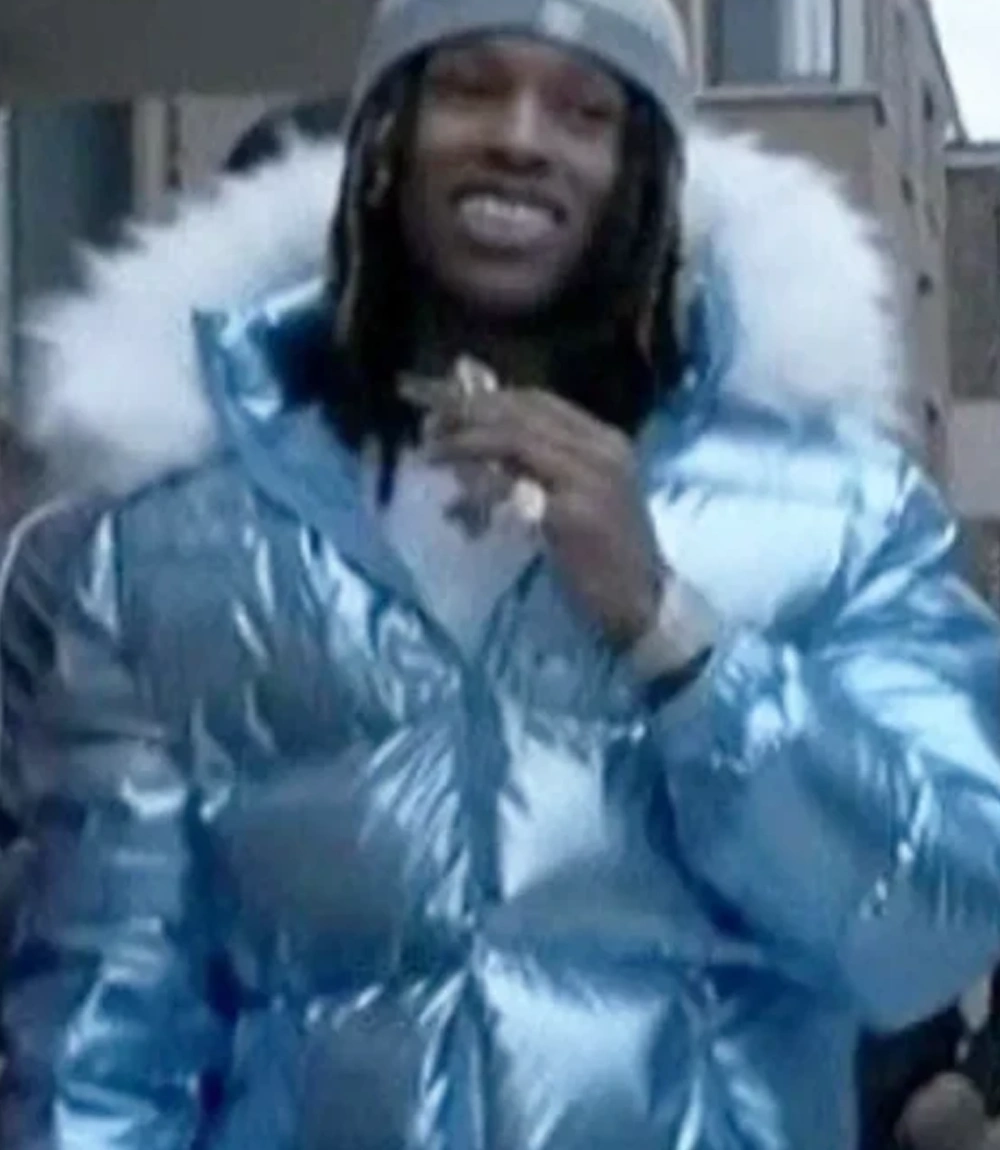 King Von Blue Hooded Puffer Jacket