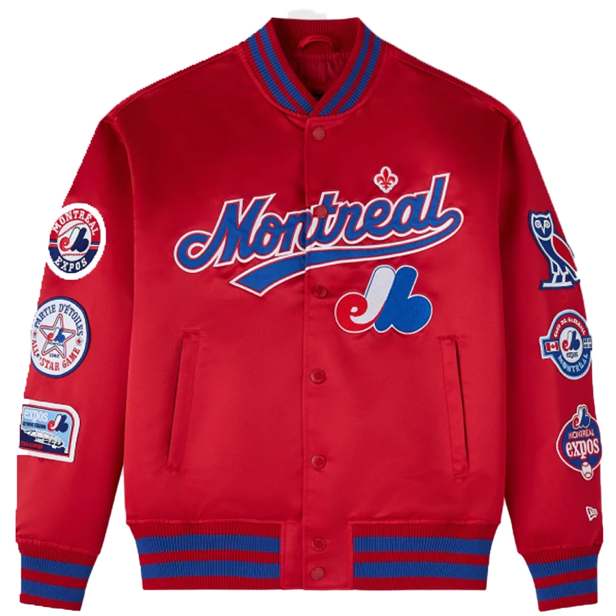 OVO x New Era x MLB Montreal Expos Red Satin Varsity Jacket – Recreation